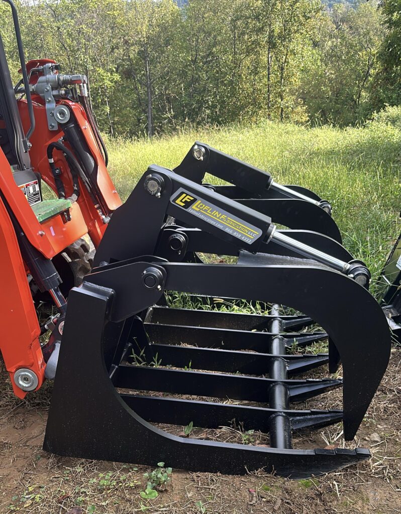 • Grapple Buckets: Ideal for grabbing, lifting, and moving large materials like logs, brush, and debris. This attachment is perfect for land clearing and site clean-up, allowing us to handle even the most challenging jobs with speed and control.