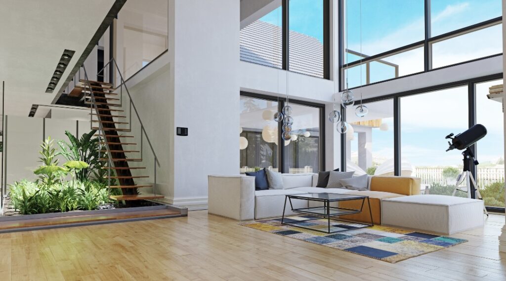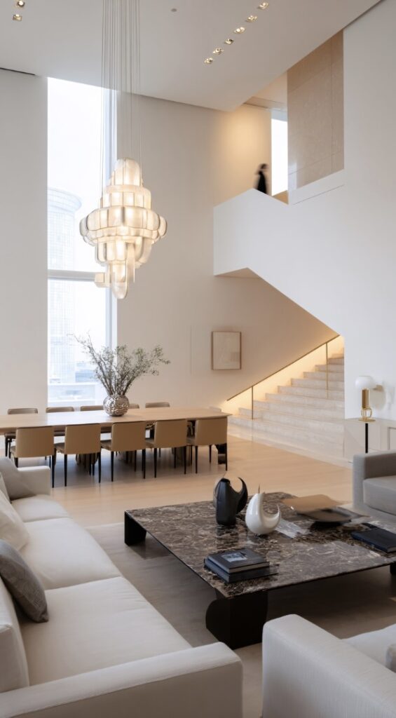 Double-height spaces allow homeowners and designers to play with interior elements such as oversized chandeliers, tall bookshelves, indoor balconies, or statement art pieces. The vertical space becomes a canvas for creativity.