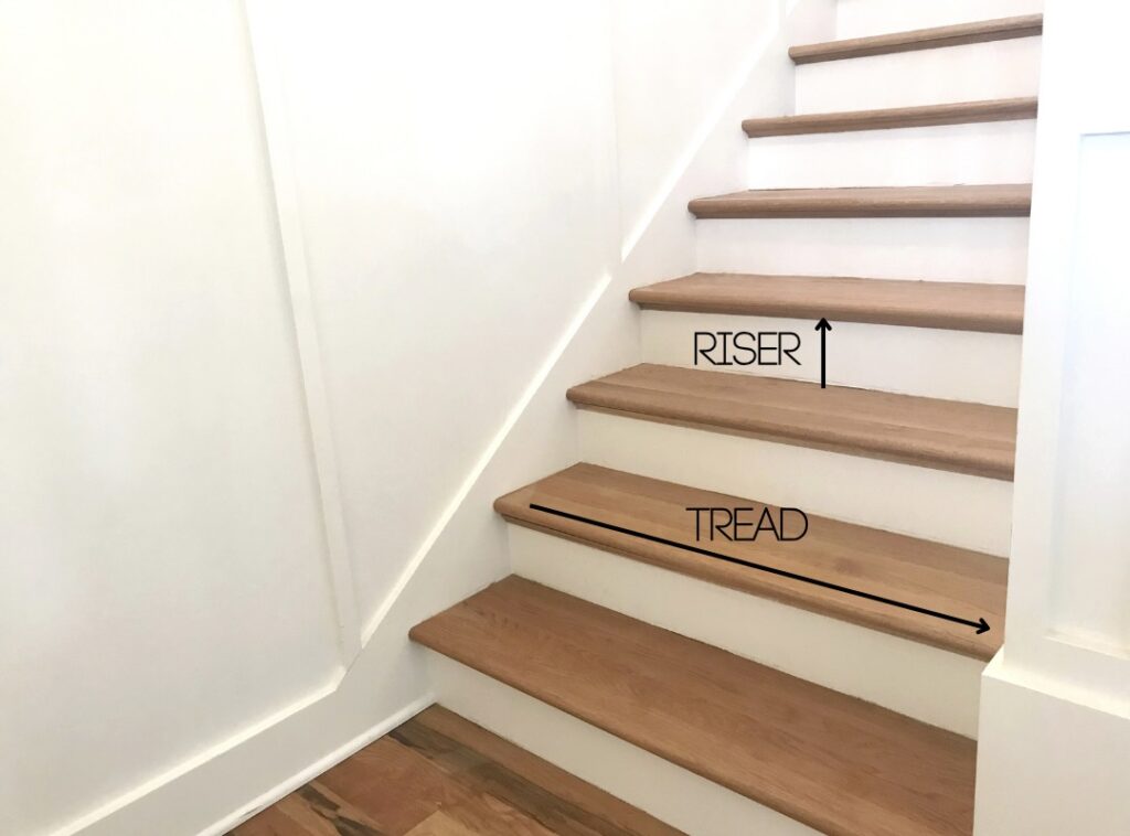 The tread, also known as the “run” or “step depth,” is the horizontal part of the stair where you place your foot.